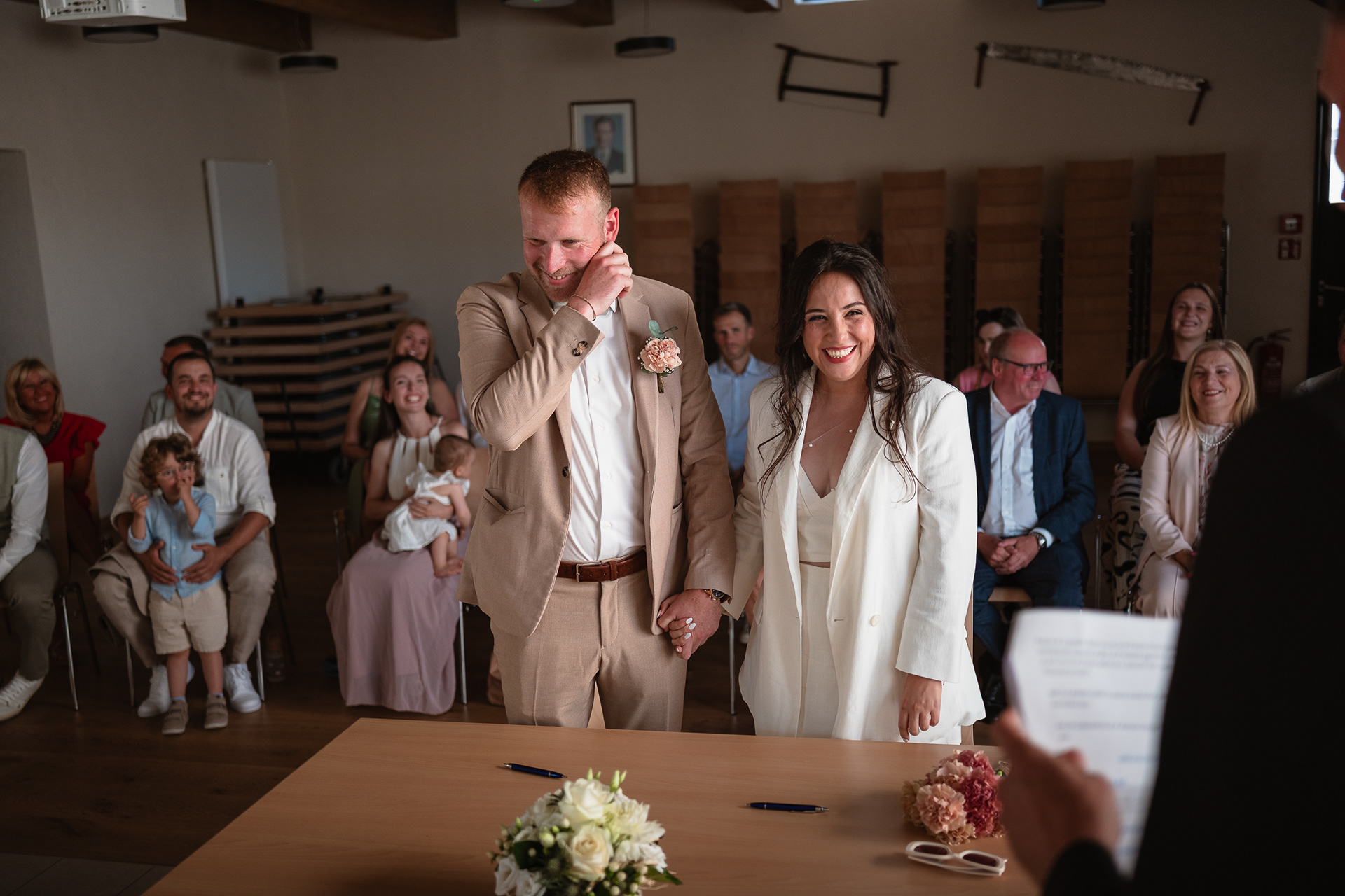 "Häerzlech, kompetent an kreativ, sou hun mir dech virun, no an och während der Hochzäit erlieft! Et huet een sech wuel gefillt an zu kengem Zäitpunkt sech missen verstellen! D'Resultater schwätzen natierlech och vir sech selwer! Mir si frou, dass du eis bei eiser Hochzäit begleed hues 🥰"